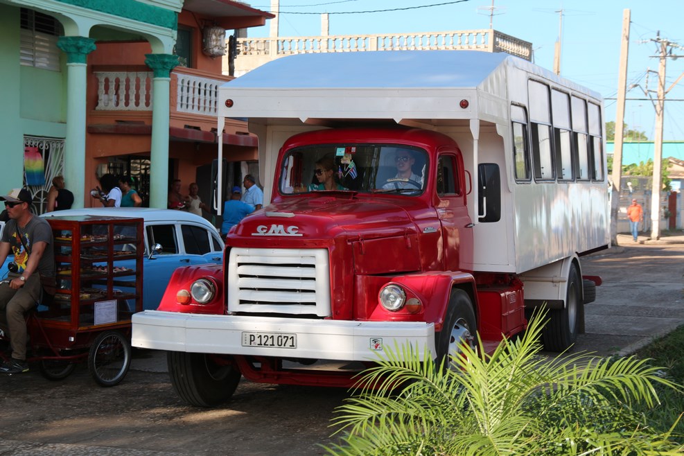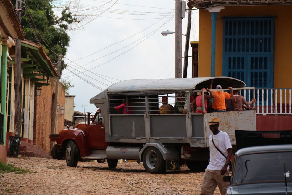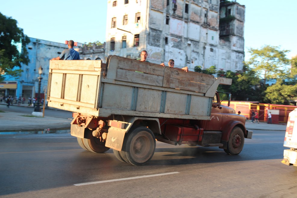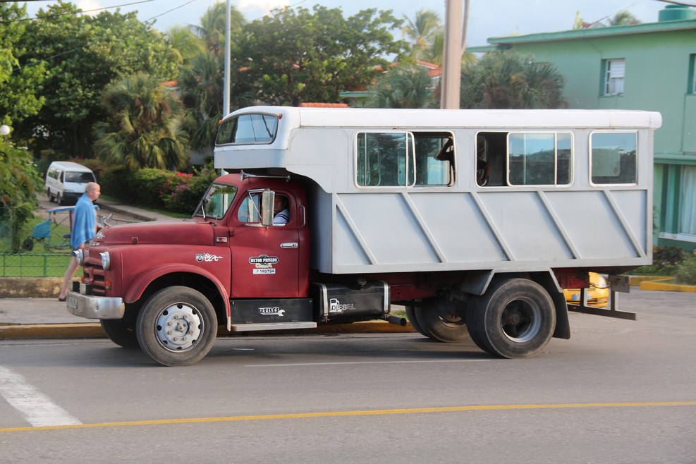 С автобусами напряженка везде, поэтому кубинцы приспосабливают под общественный транспорт все, что может двигаться. Старые машинки забивают до предела: