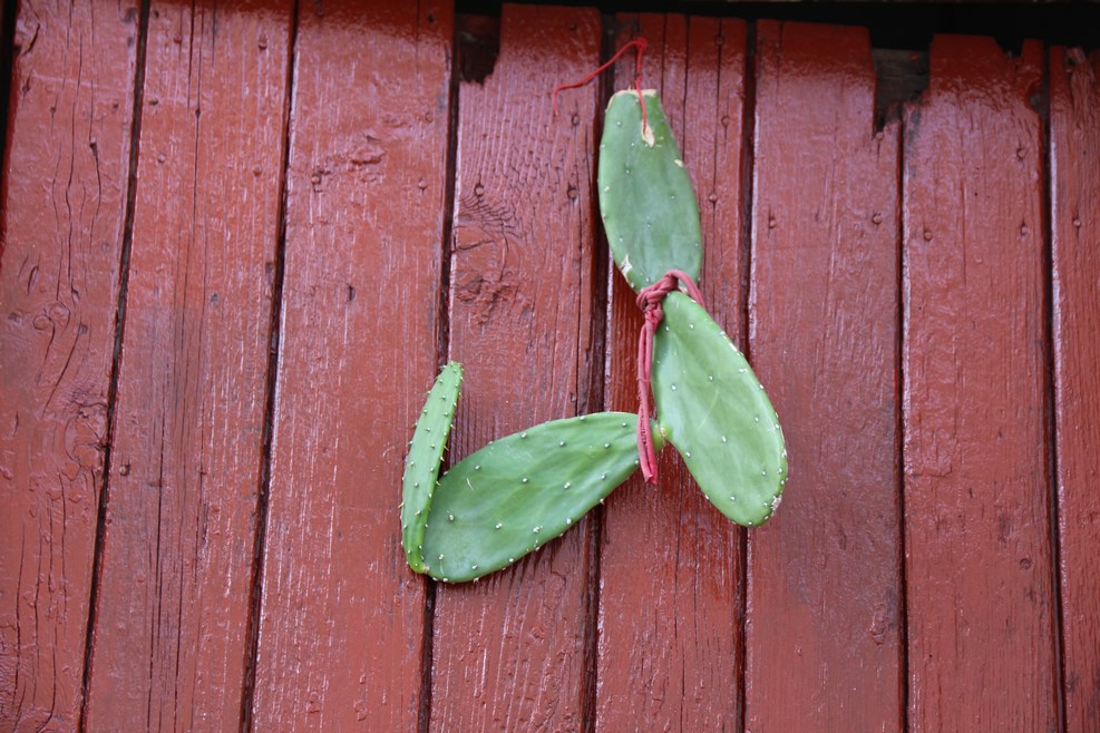 Кто-то зачем-то прикрепил часть кактуса на дверь: