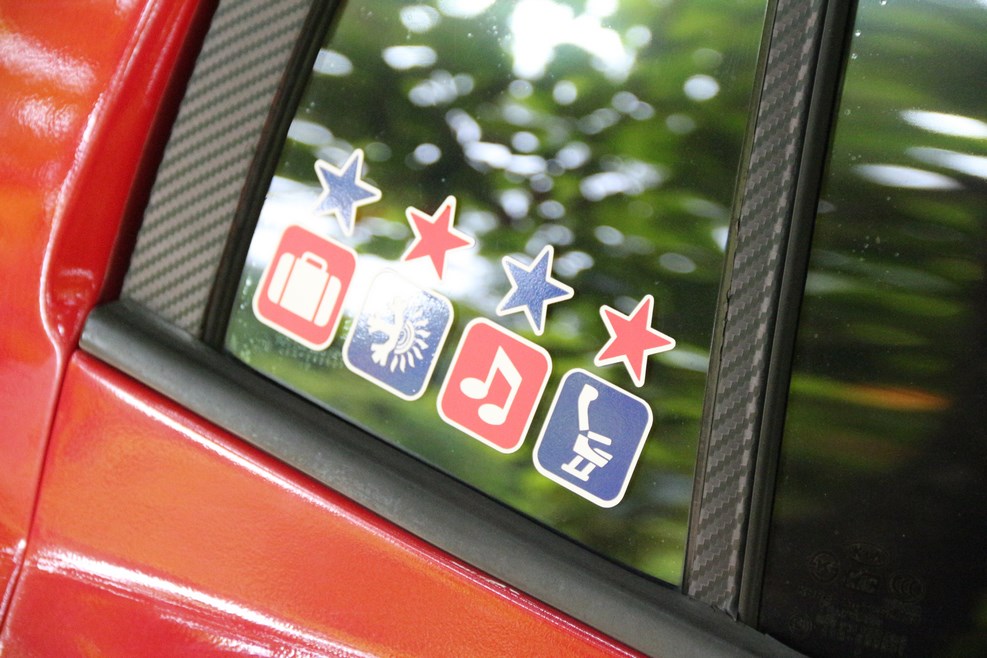И наклейками на заднем стекле, чтобы местные видели у кого можно поклянчить денег: