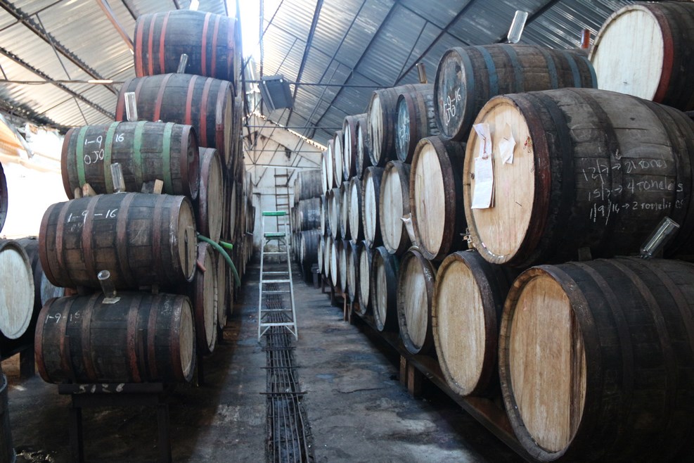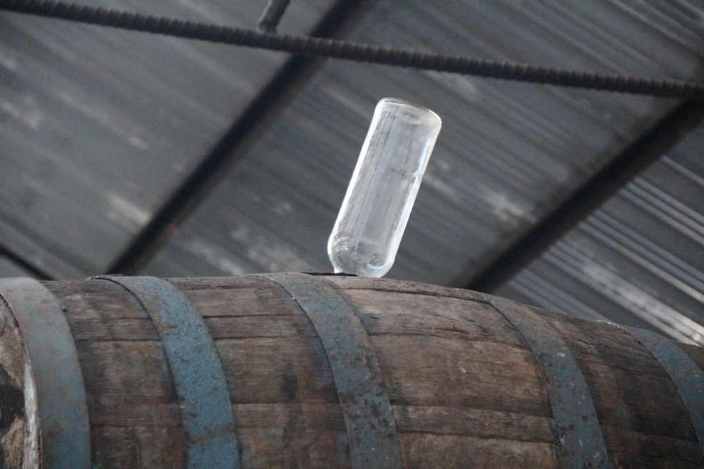 Вместо пробок в бочках используют бутылки: