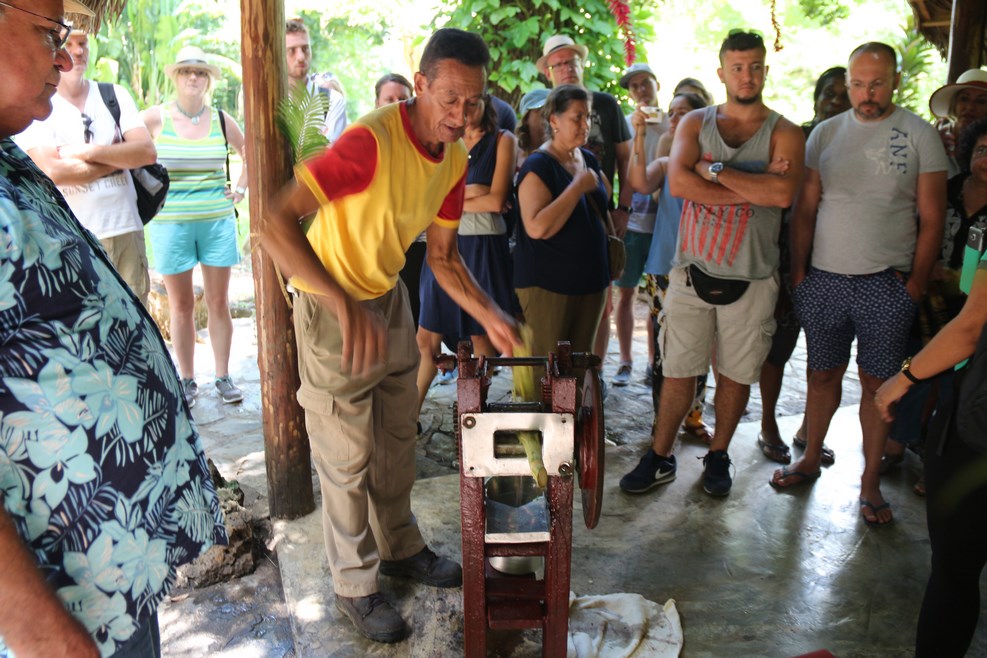 На входе около пещеры есть небольшой навес, где за доллар угощают свежевыжатым соком из сахарного тростника: