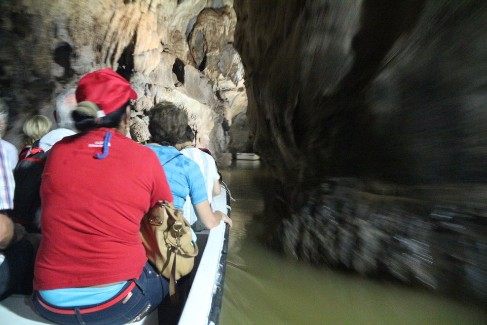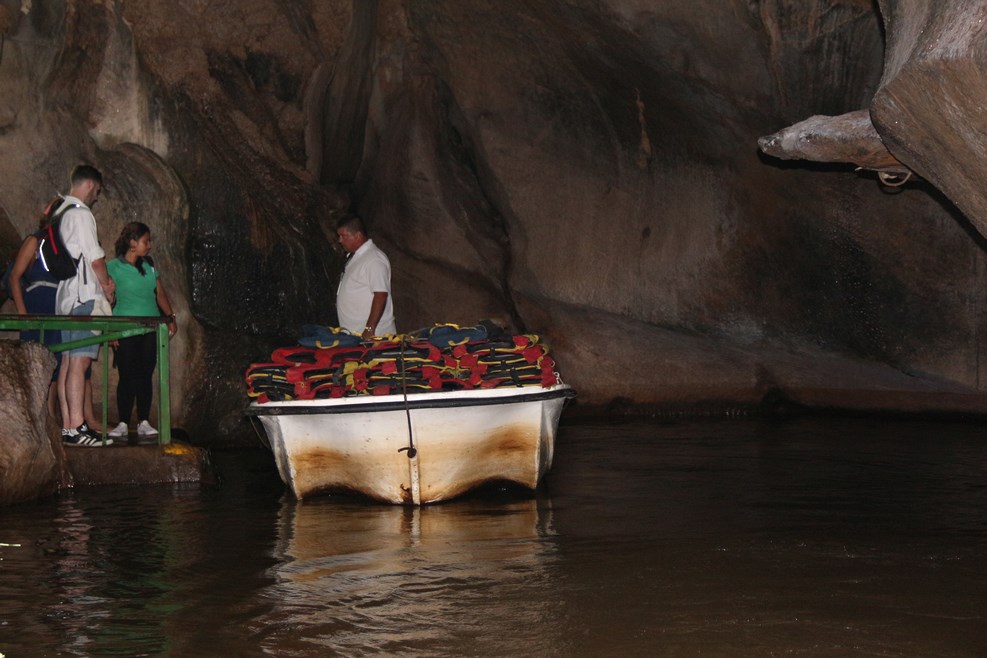 Туристов сажают в лодку и минут 10 катают по пещере: