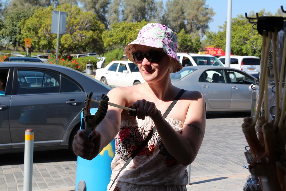 Олька потренировалась в стрельбе из рогатки:
