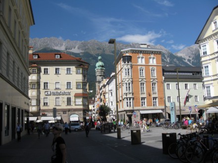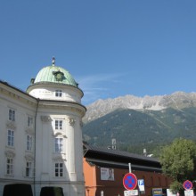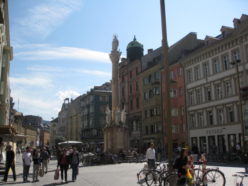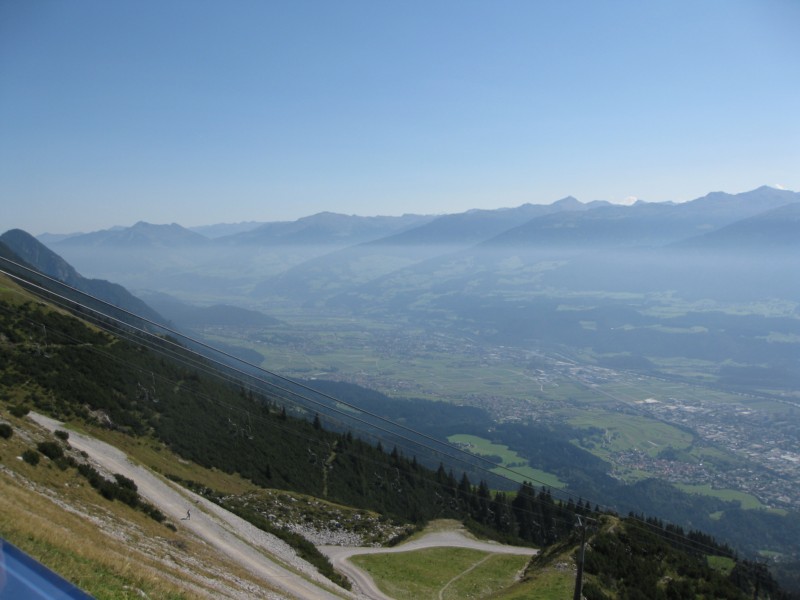 В Инсбруке есть способ подняться на высоту 2200 метров. Стоимость подъема и спуска стоит 54 евро на двоих. Сначала примерно до половины везет фуникулер: