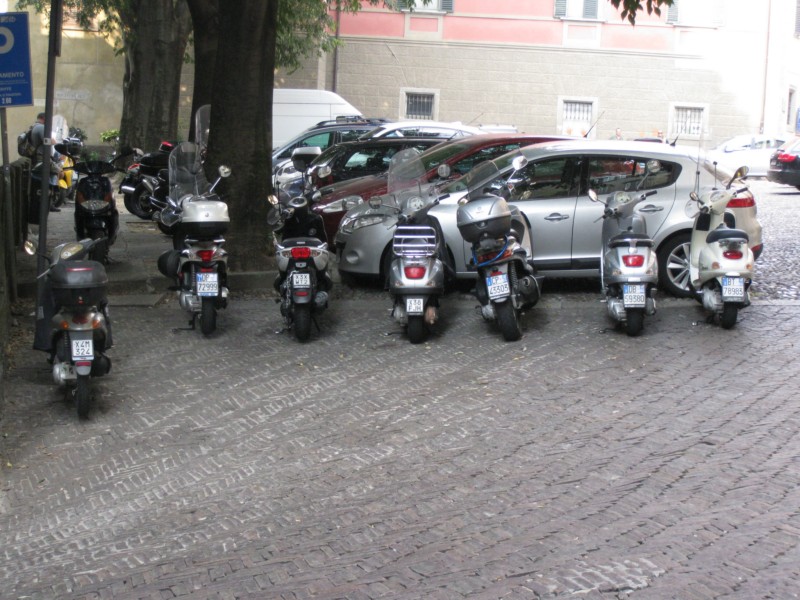 Погуляли по городу. Около крепостной стены какая то тетка пыталась запарковать свой автомобильчик. Ткнувшись пару раз в бампер сзади стоящей машины не солоно хлебавши она поехала искать парковку в другом месте:
