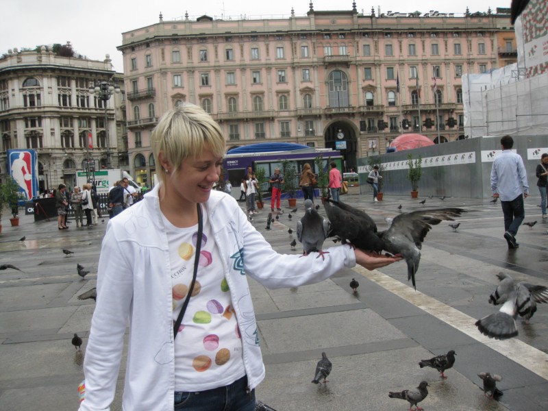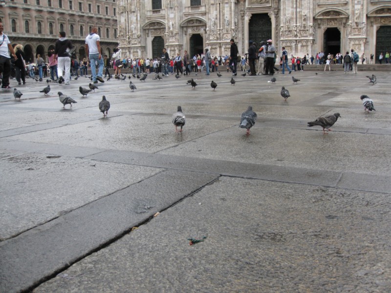 Голуби ходят неторопливо в надежде, что их кто-то из туристов покормит: