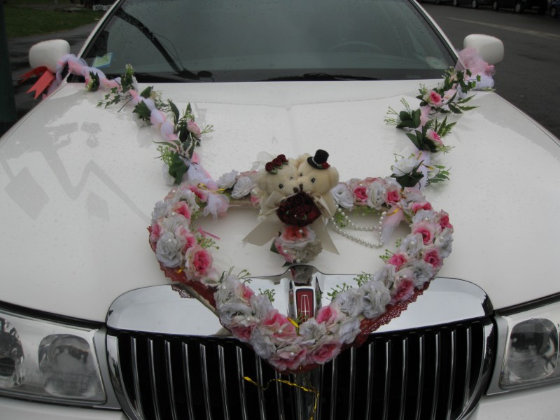 На главной площади молодожены справляли свадьбы. Лимузин украшали мишки: