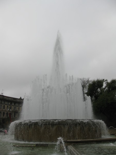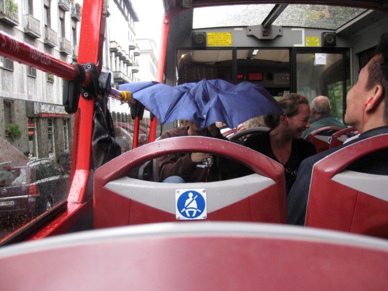 Сели на автобус за 20 евро и поехали осматривать город. Температура была примерно 22 градуса и было дождливо. Амерекос что бы на него не лил дождь ехал с зонтиком: