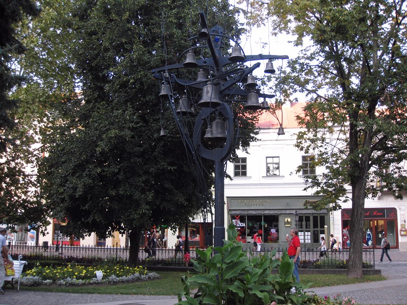 А в эти колокольчики, управляемые компьютером, играют красивые мелодии и в такт им бьет фонтан, что находится рядом: