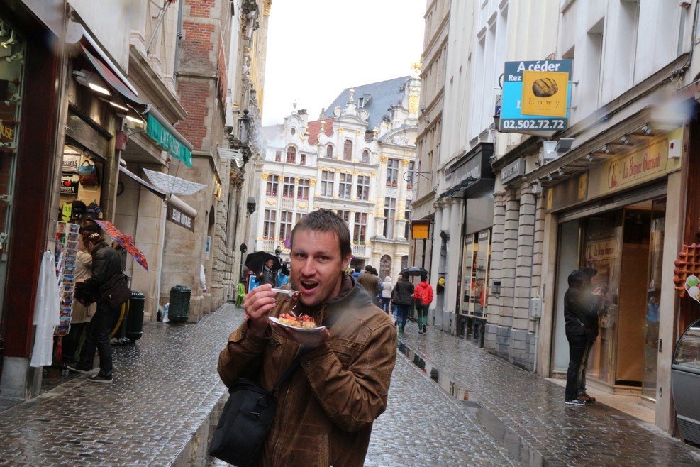 Ем бельгийские вафельки с шоколадом и клубникой. М-м-м, объедение: