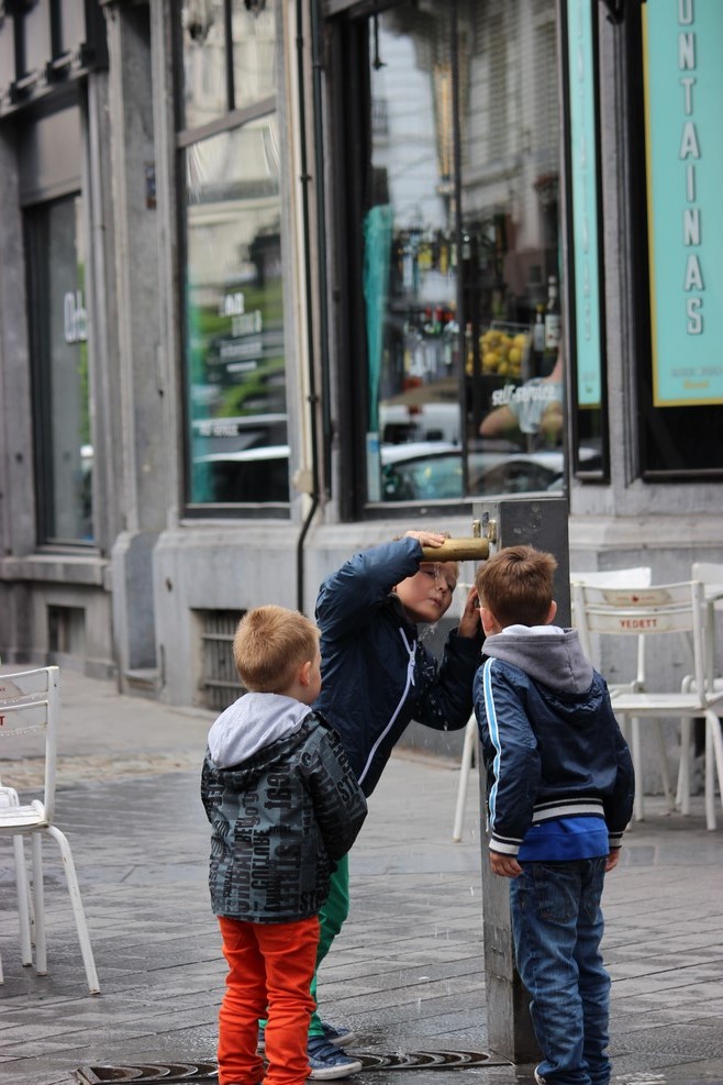 Пришли к писающему мальчику. Мальчик меня разочаровал. Вместо полноценного писюна торчит трубка, которая почему то идет через задний проход: