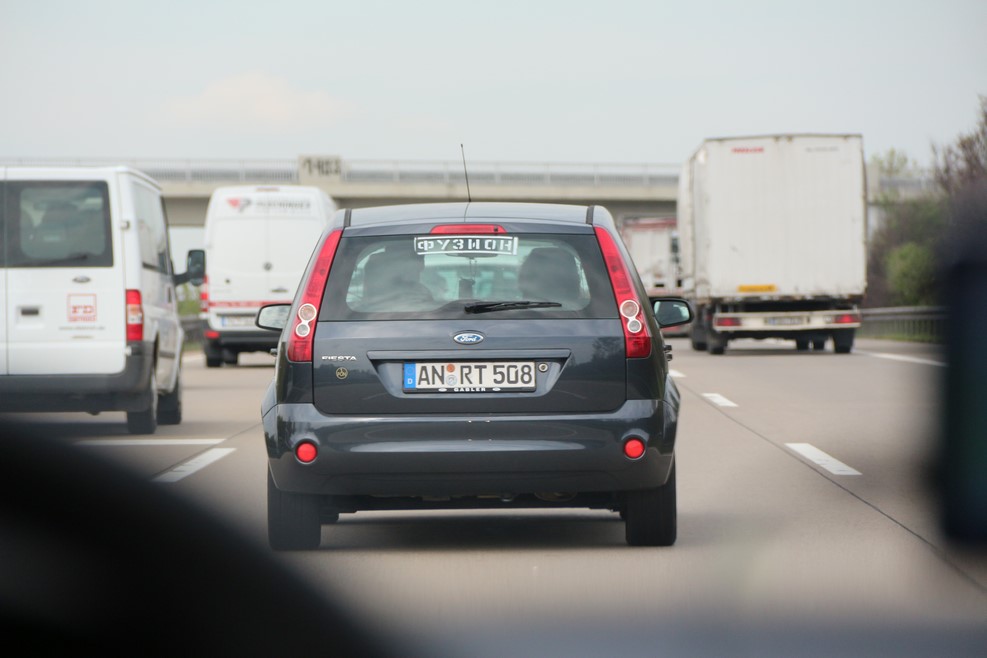 Выехали из города. Увидели германскую машину, на которой в русской транскрипции было написано название машины «FUSION»: