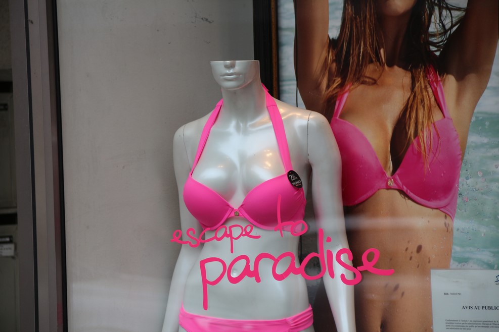 У манекена лифчик спущен только на половину, поэтому тема сисек не раскрыта: