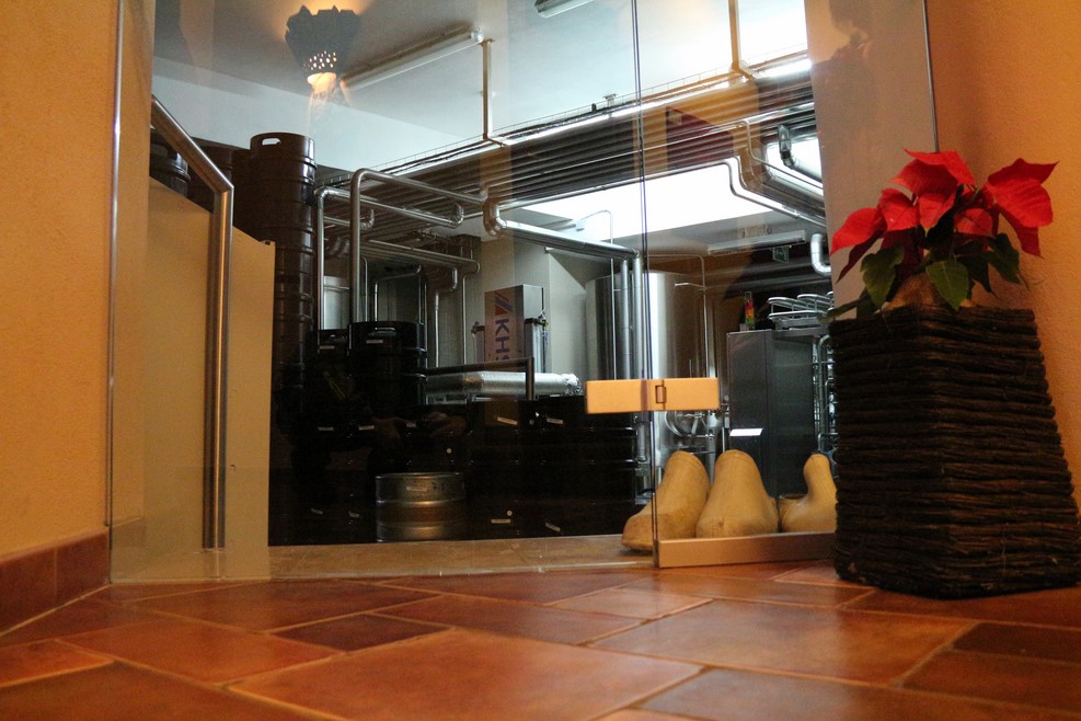 А напротив был аж небольшой пивной заводик. На входе туда: