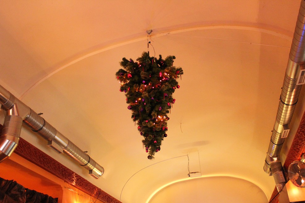 Ну где бы мы еще увидели новогоднюю елку вверх тормашками?: