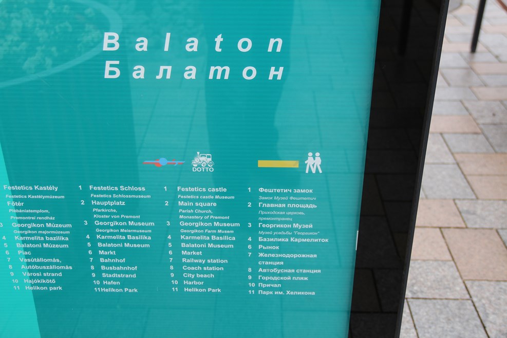 В городе довольно большое количество русскоязычных туристов, об этом говорит то, что во всех центральных ресторанах есть меню на русском, но самый очевидный признак это то, что карта в центре города выполнена с расшифровками на венгерском и русском языках: