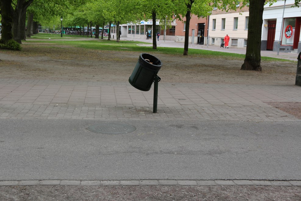 На велодорожке мусорка немного наклонена в сторону движения, что бы можно было бросать мусор с велосипеда прямо на ходу: