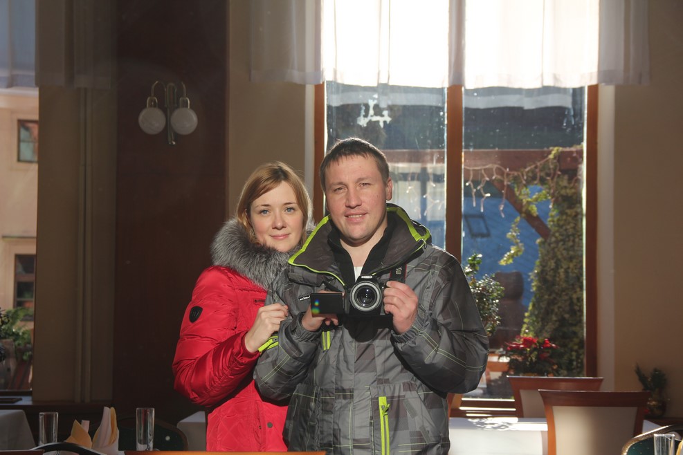 Погуляв по городу, нашли банкетный зал, где мы встречали Новый Год. Селфи в банкетном зале: