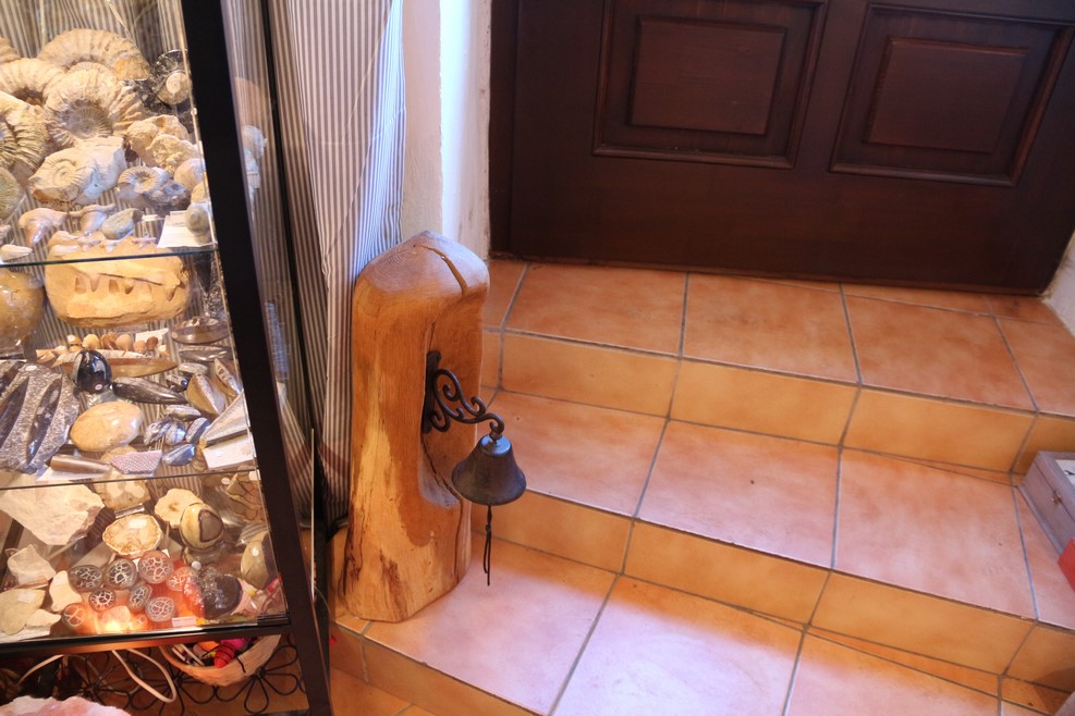 В сувенирной лавке колокольчик висит не над дверью, а находится под ногами: