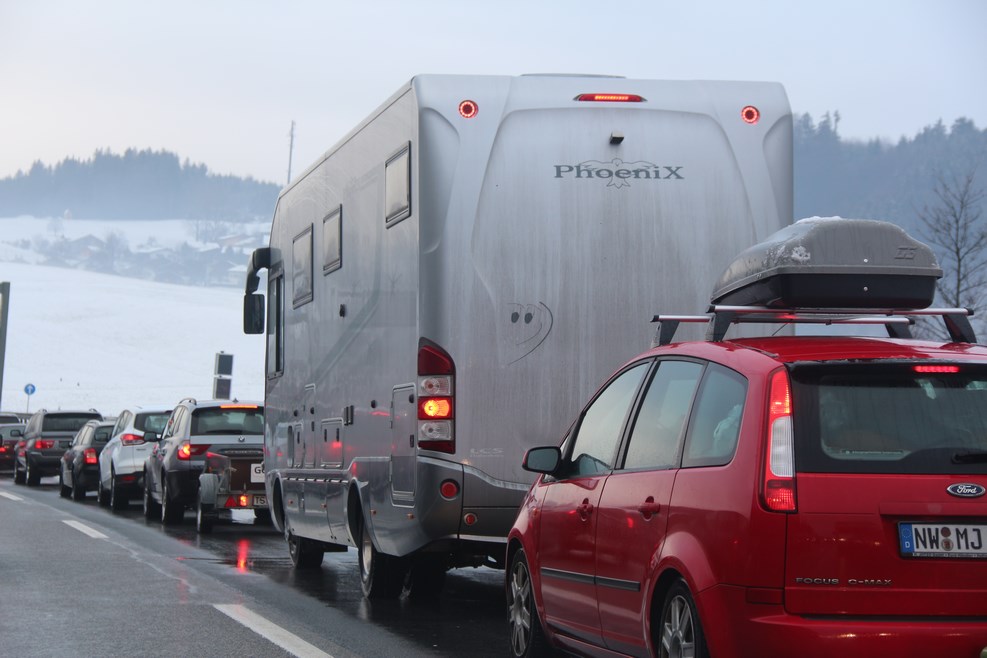 Что бы попасть из Вены в Инсбрук, надо проехать примерно 100 километров по Германии. На границе была глухая пробка, вызванная дополнительным контролем немецких пограничников. Знак в нейтральной зоне предупреждает, что не стоит перелазить через ограждение, разделяющие потоки автобана: