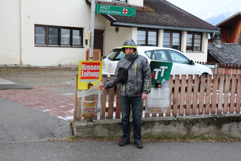 Так же как и в Вене пресса лежит совершенно свободно. Вверху есть коробка, куда надо опустить один евро за журнал: