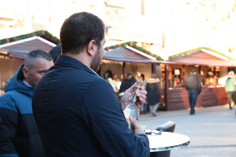 Внутри располагалась ярмарка. Часть прилавков торговала едой, но особенной популярностью в этот день пользовалось шампанское: