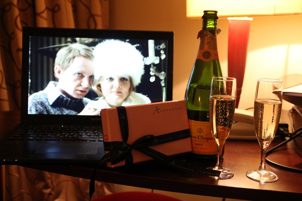 Все это означало, что наша машина могла двигаться только до тех пор, пока не кончится заряд аккумулятора (нет ремня, нет зарядки аккумулятора от двигателя. Нет заряда аккумулятора, нет искры на свечах, топливо не воспламеняется). На такой вот замечательной ноте мы заканчивали этот год. Мы сходили в супермаркет, закупились шампанским, достали из запасов швейцарский шоколад, включили «С легким паром» и отметили наш новый 2017 год: