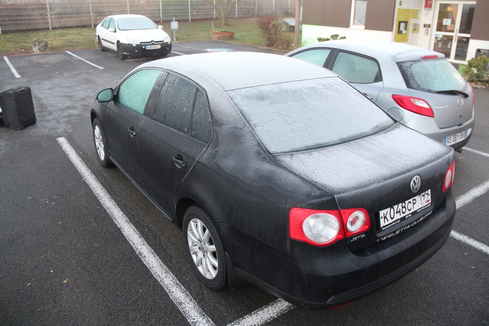 Тут мы останавливались на ночевку. Утром было довольно прохладно и наш автомобильчик выглядел вот так: