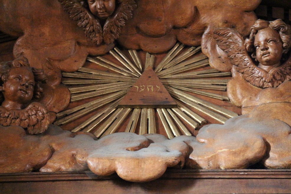Зашли в Дижонский собор. Нашли внутри надпись похожую на иврит: