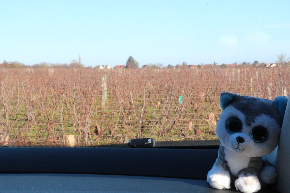 Где она находится, мы знали лишь приблизительно, поэтому остановились в деревне спросить дорогу у местных. Стоянка для машин находится прямо в поле среди виноградников: