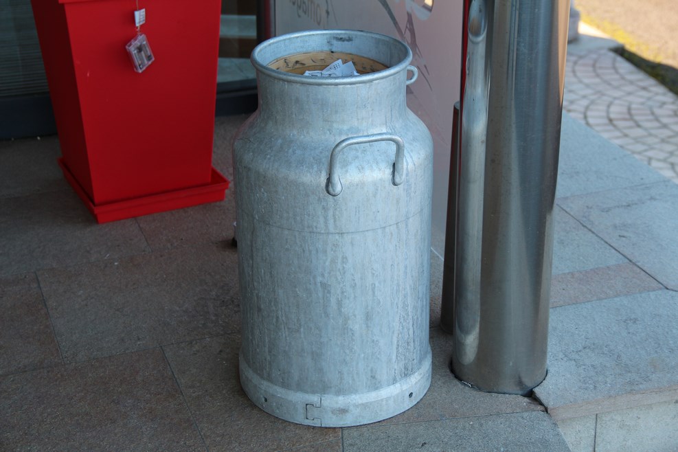 Тут тоже приспособили бидон, на этот раз под мусорку: