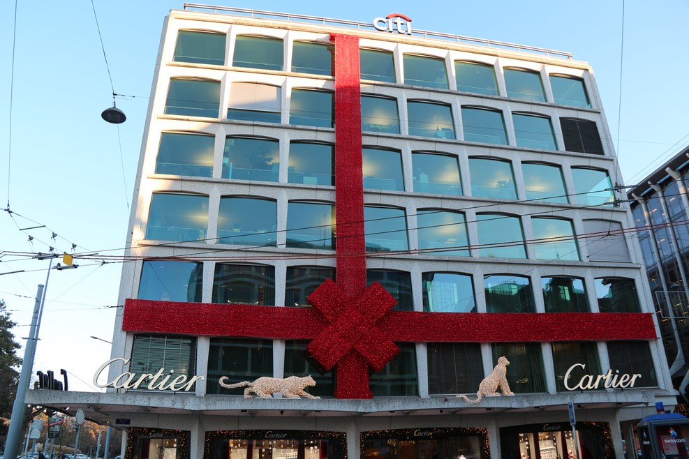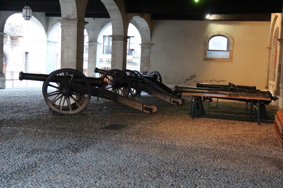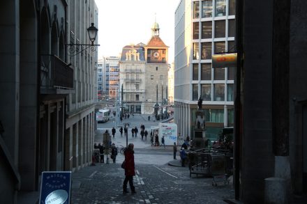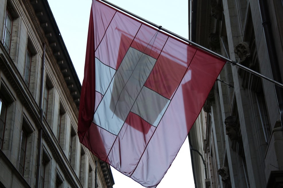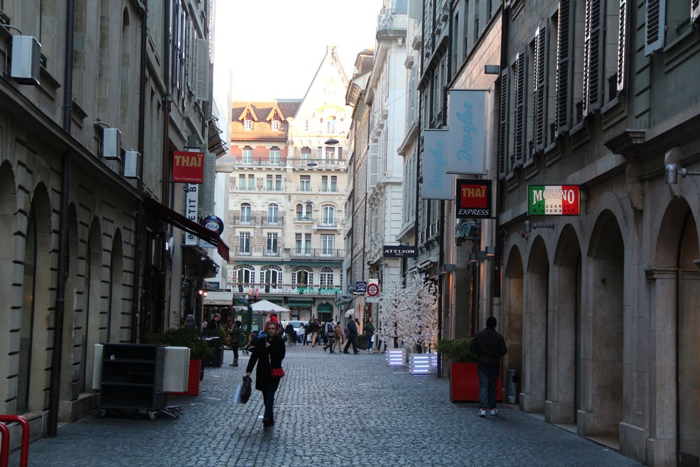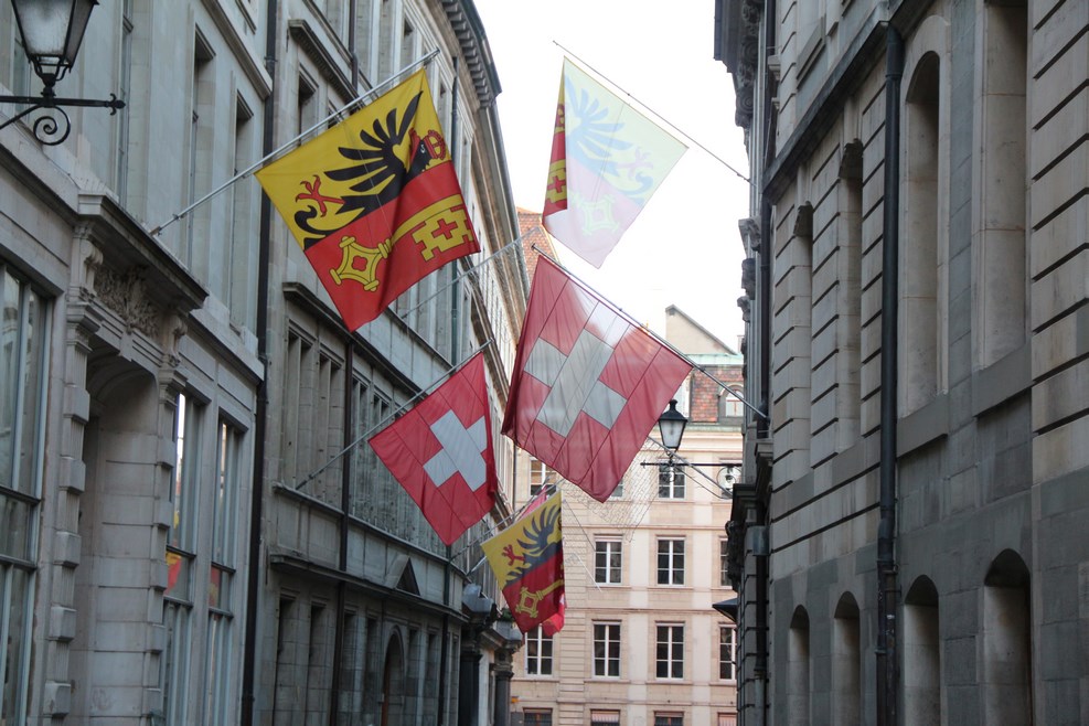 В центре, на тесных улочках, развешено сверхбольшое количество швейцарских флагов: