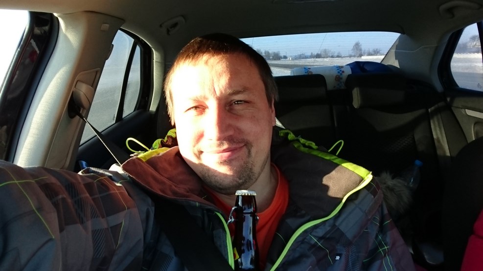 Недалеко от Бреста нас поймали за превышение гайцы. За плюс двадцать девять километров отдали штраф 700 рублей, расплачивались карточкой на терминале. Едем дальше, я отогреваю бутылку пива, которая промерзла до льда, потому что мы ее на ночь оставили в машине: