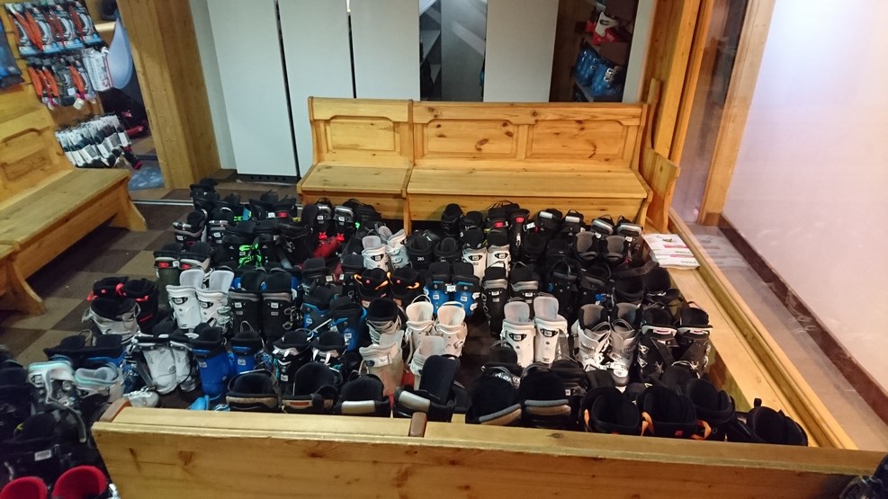 Аренда лыж составляет примерно 30 евро. На фото ботинки после того, как их вернули арендовавшие после дневного катания: