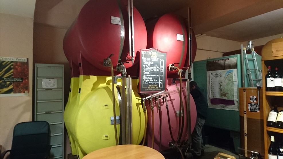 Стоимость глинтвейна составляла на склоне 7 евро, пиво продавали за 12 евро пол-литра. Около гостиницы можно было взять вино по 1.5 евро за литр прямо из вот таких бочек: