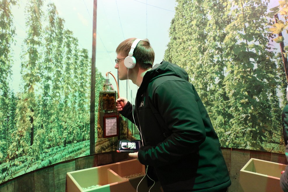 Ребята нюхают ингредиенты, из которых делают пиво: