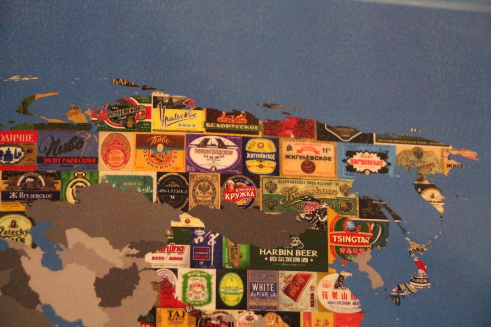 Один из экспонатов музея – карта земли с наклеенными этикетками от пива, которое производится в данной местности. Нетрудно заметить, что Россию в основном представляет пиво «Жигулевское»: