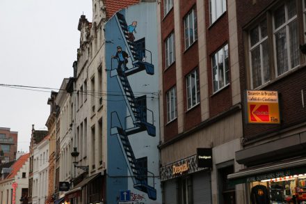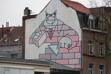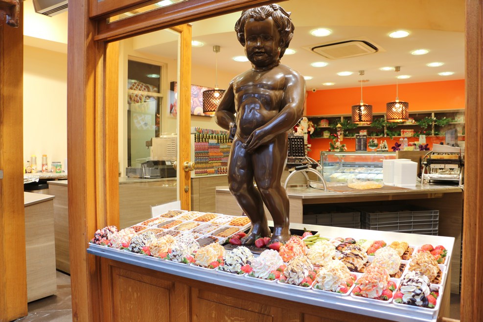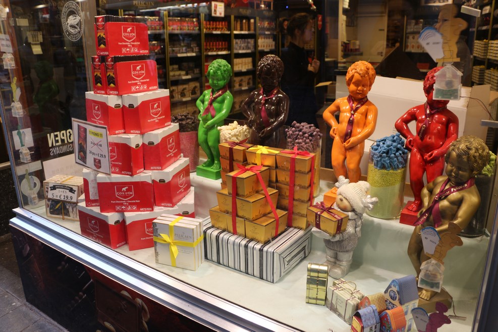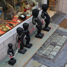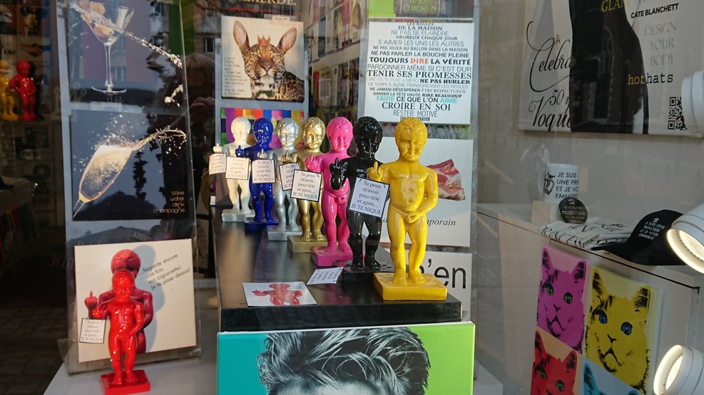 На всех прилегающих улицах тема писающего мальчика нещадно эксплуатируется: