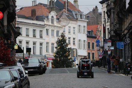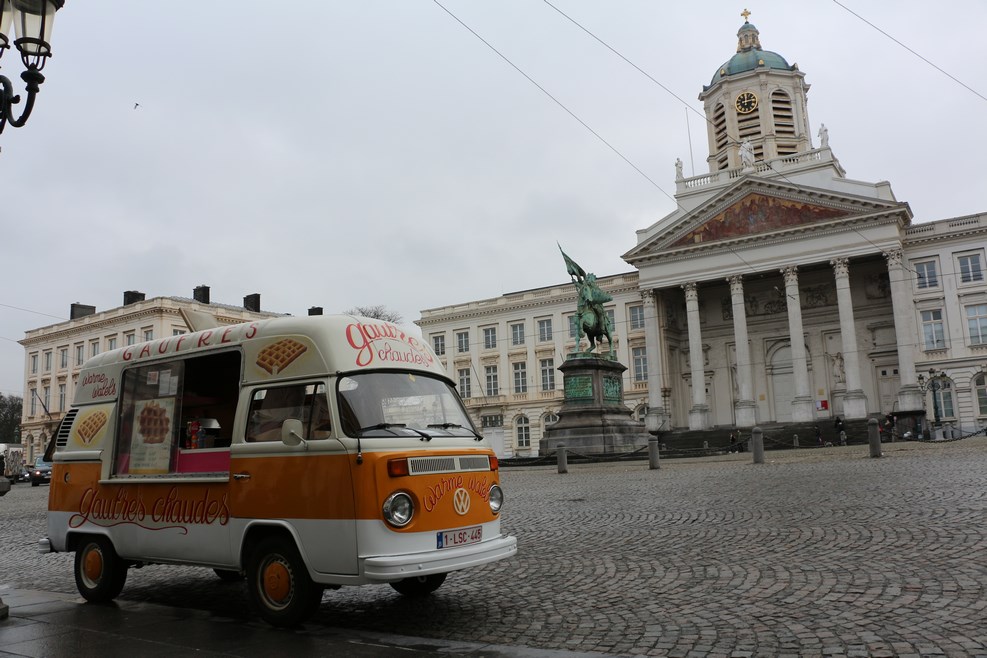 В таких забавных фургончиках, разбросанных по всему центру, продают бельгийские вафли: