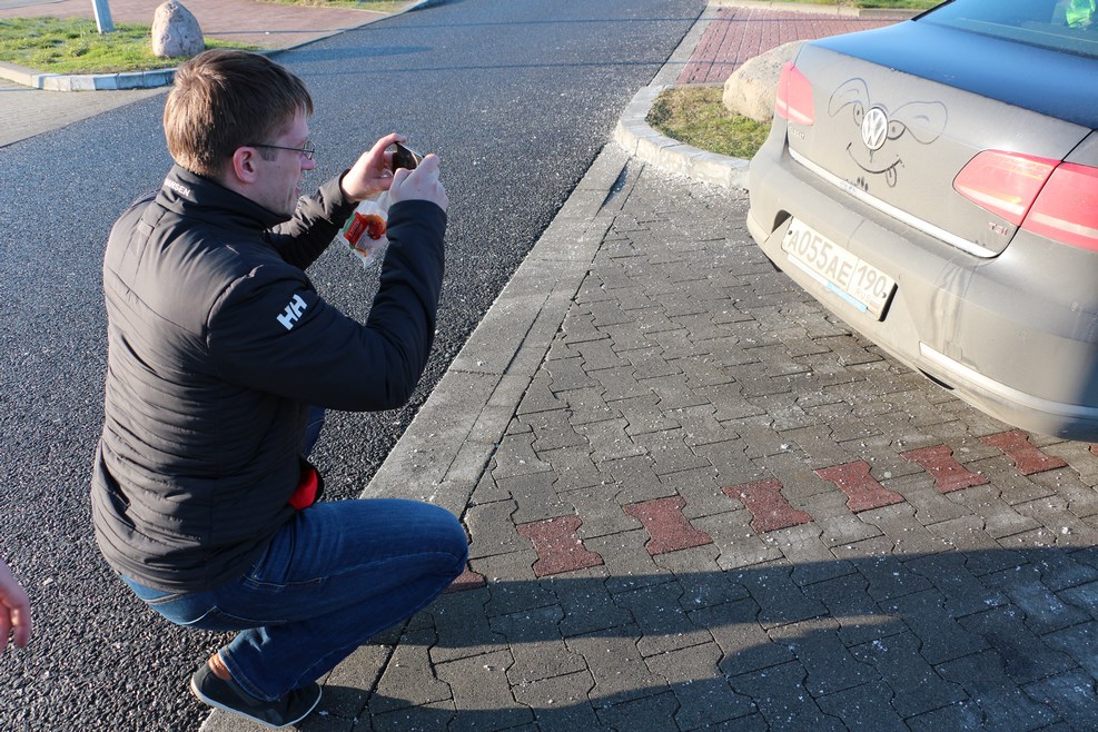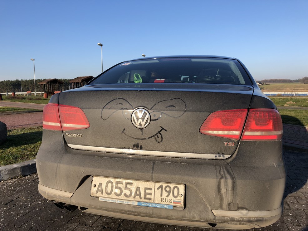 Вообще, зад Лешиного пассата очень часто становится объектом для вдохновения. Рисовали мы на нем и в [=>> Словакии <<=] и в [=>> Армении <<=]. А Леша, тем временем, забирает себе рисунок на память и мы едем дальше: