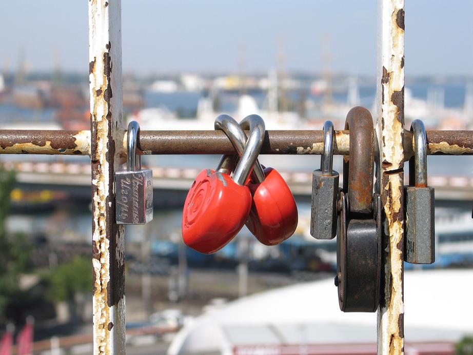 В Одессе, так же как и в Ярославле есть традиция вешать замочки на мост (эти висят на тещенном мосту):