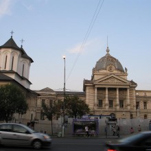 После замка двинули в Бухарест. В Бухаресте чисто интуитивно выехали прямо на огромный железнодорожный вокзал Гара де Норд. Так как подробной GPS карты города у нас не было, решили покататься по городу на метро. Из путеводителей узнали что все достопримечательности города находятся в «старом городе», но вот беда, в интернете нигде не пишут, на какой станции метро находится этот «старый город». Для таких же путников как мы пишу название станции: Университет. Мы долго думали как найти эту станцию в незнакомом городе, с незнанием румынского языка. В конце концов просто открыли фотографию на ноутбуке, подошли к охраннику, который стоял около схемы метрополитена, и показали ему фотку и на схему, он все понял, и показал куда нам надо ехать. И вот фотографии старого города: