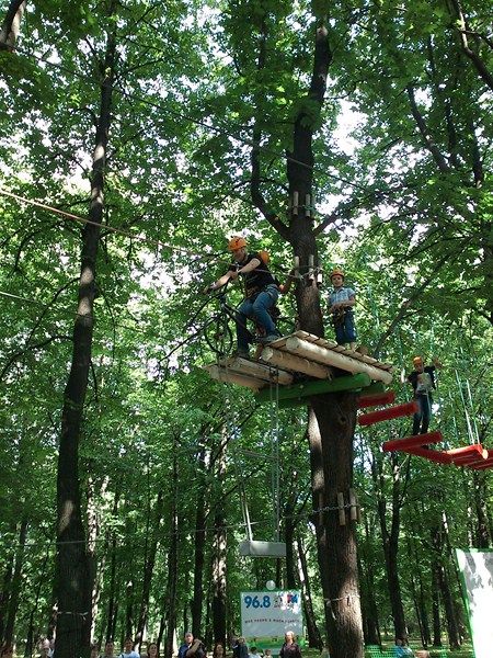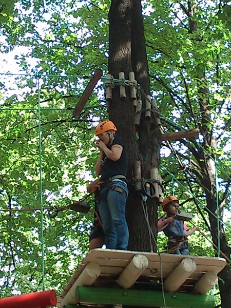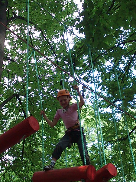 Далее Лето. Мы с Олькой в парке в сокольниках. Она решила пройти по полосе препятствий: