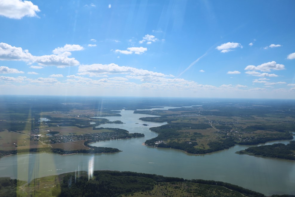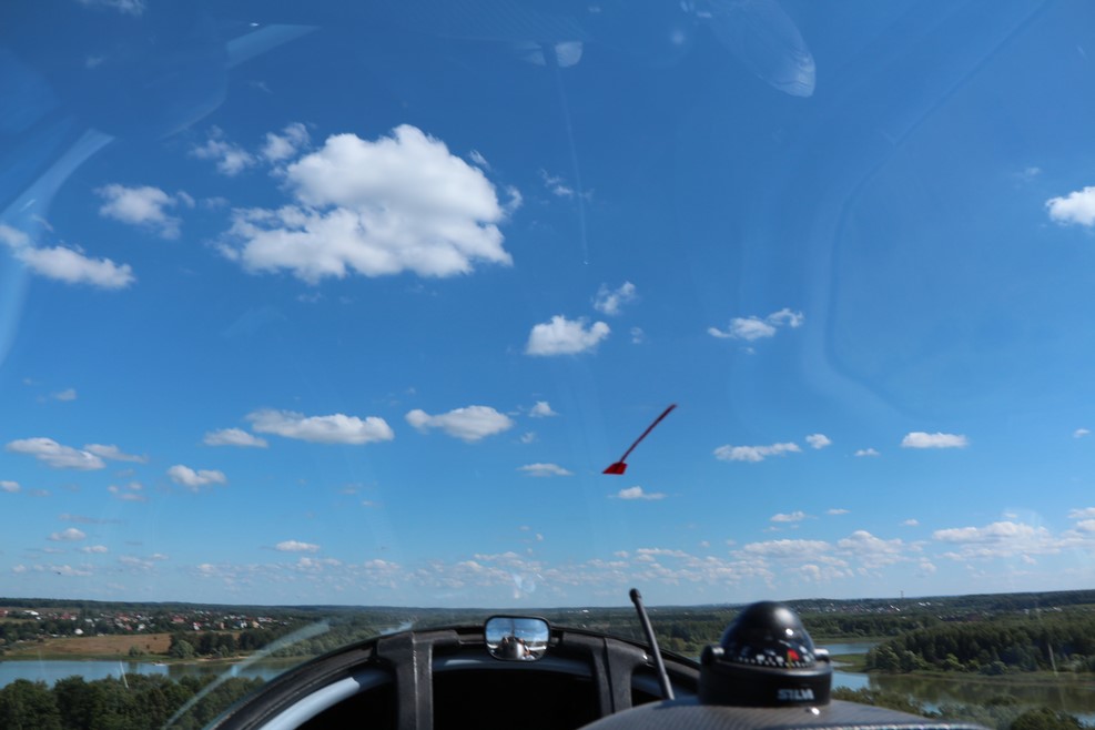 И полетели. Красная верёвочка на стекле прикреплена не для красоты. Она показывает угол наклона планера в пространстве: