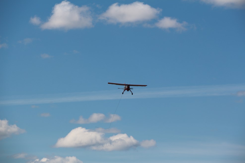 В небе трос разъединяется, и самолет летит своей дорогой, а планер своей. Приземление самолета: