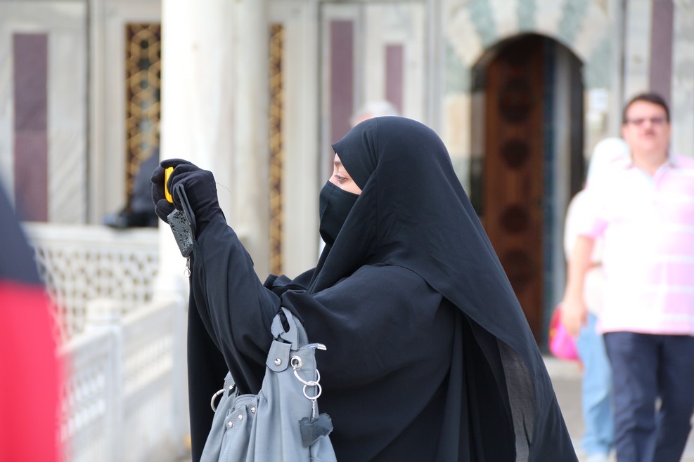 Многие восточные женщины с головы до пят одеты в черную плащ-накидку, которая называется «абая». Мы про себя таких женщин называли «ниндзя», за внешнюю схожесть с персонажами гонконгских боевиков. На фотке ниндзя фотографирует своего мужа: