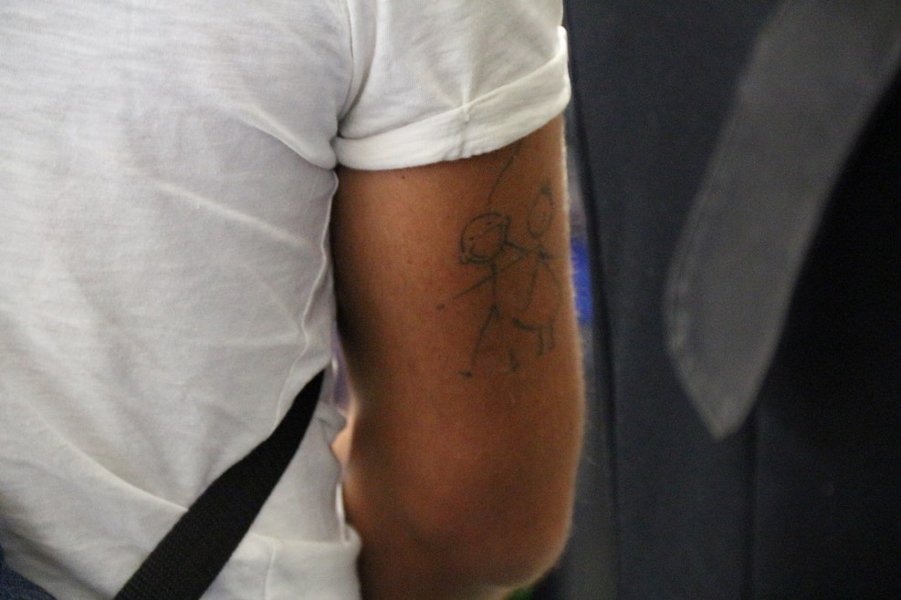 Татушка одного из пассажиров. Итальяшки любят такие простые татушки, типа смайлика или какого-нибудь квадратика: