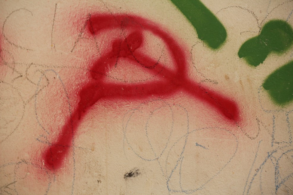 Серп и молот попадается в Италии часто в виде граффити на стенах: