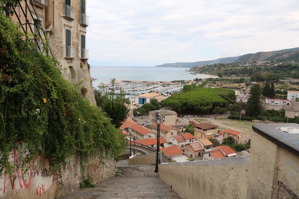 Номер нам достался с видом на море. Вид из окна на Тропеа утром: