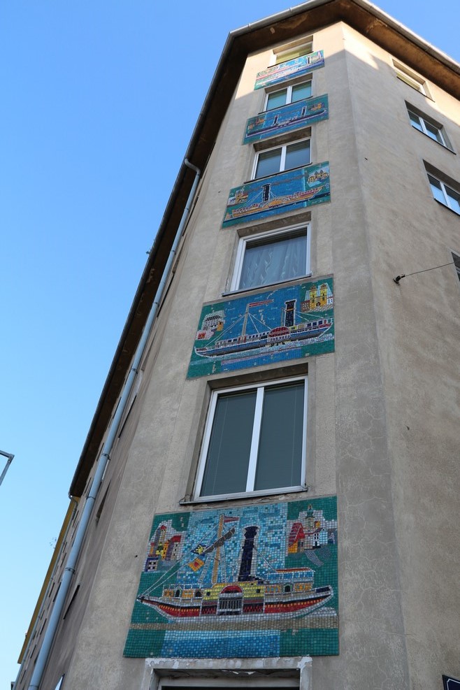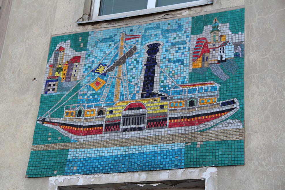 Дом на набережной с мозаикой (щелкните по фото, что бы лучше рассмотреть рисунок):